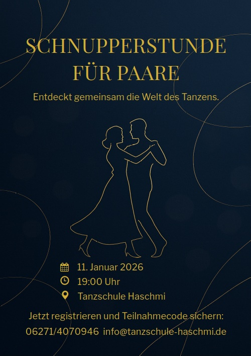 Kommt zu unserer kostenlosen Schnupperstunde für Paare am 11.01.2026 um 19:00 Uhr.